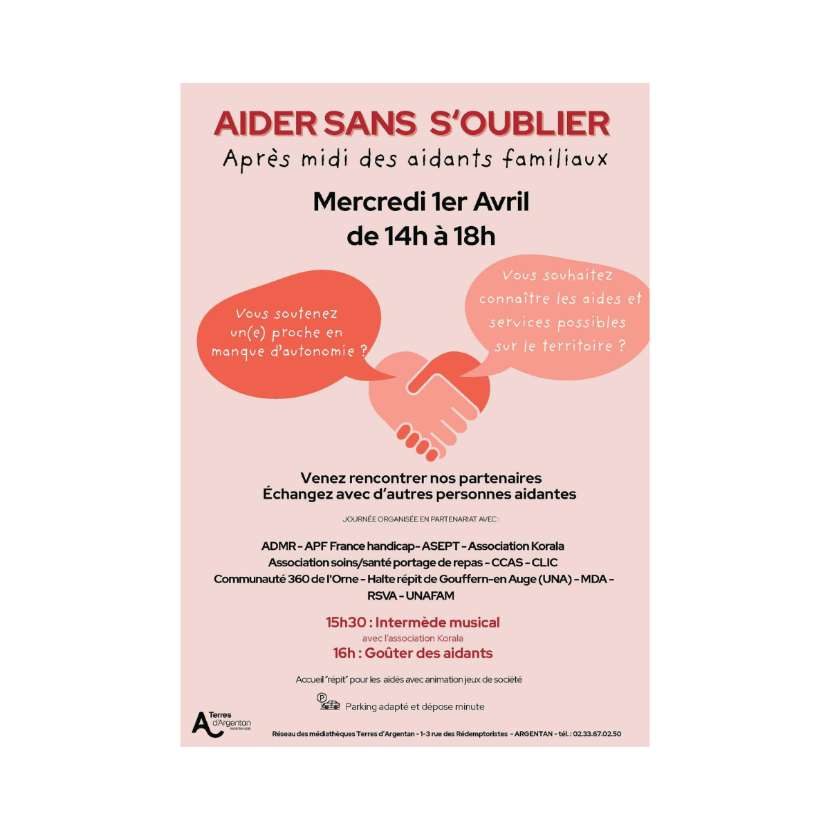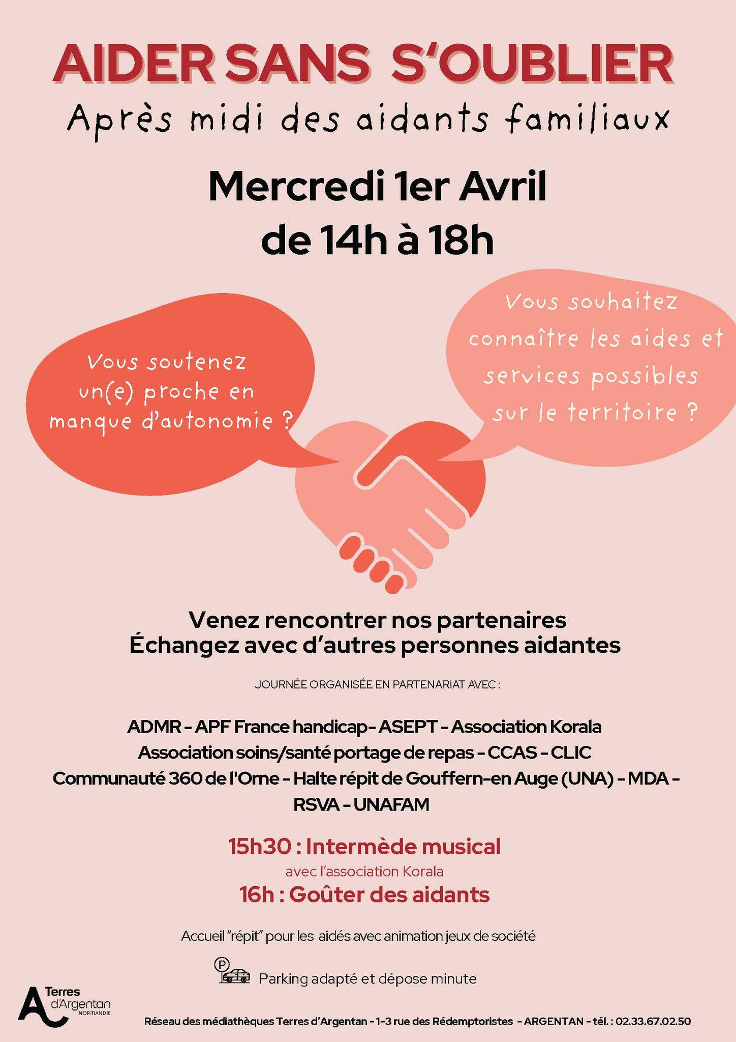 La Médiathèque d’Argentan organise, le 1er avril 2026, de 14h à 17h, une journée consacrée aux aidants intitulée « Aider sans s’oublier ».