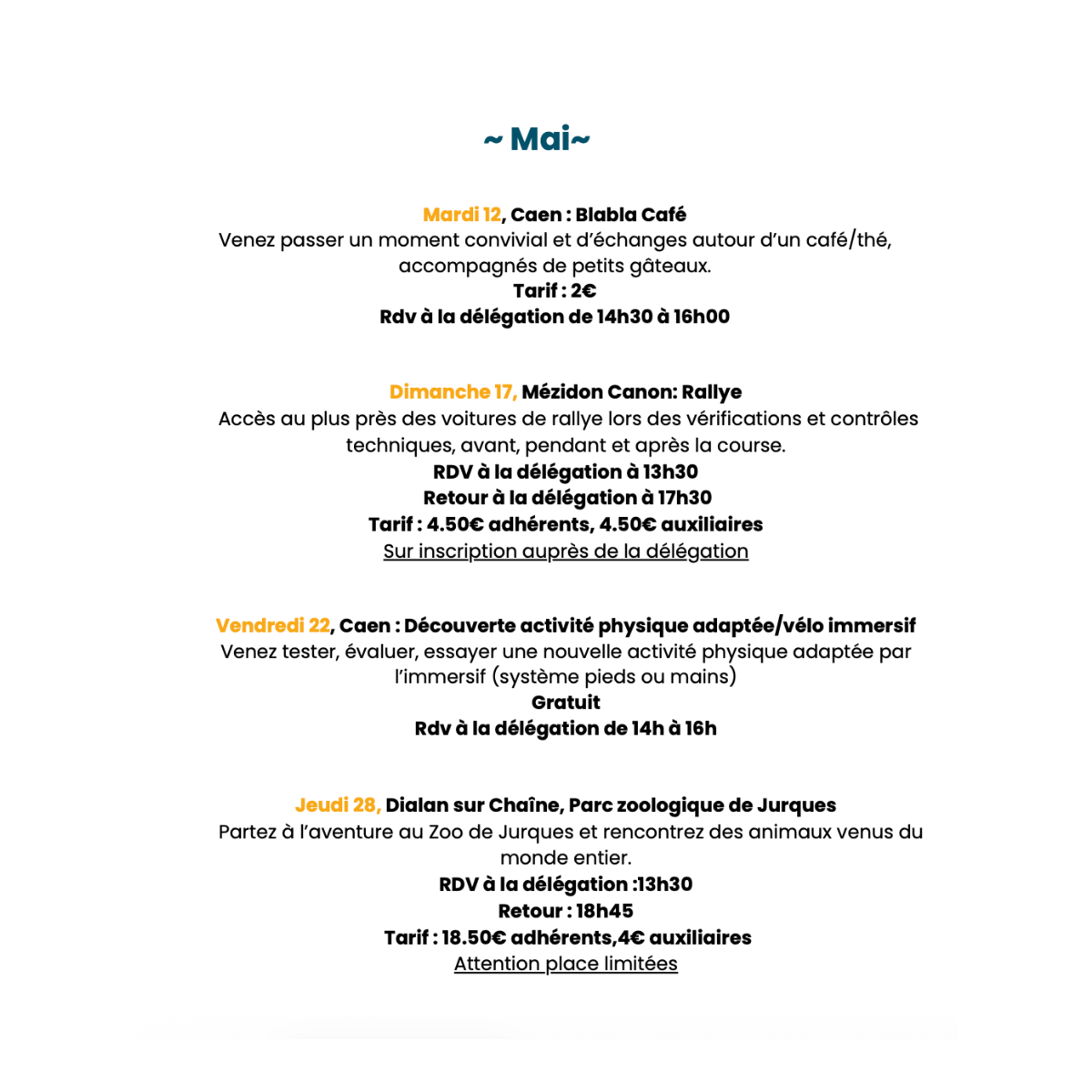 Ces événements sont exclusivement réservés aux adhérents, mais une séance test est possible sur demande.