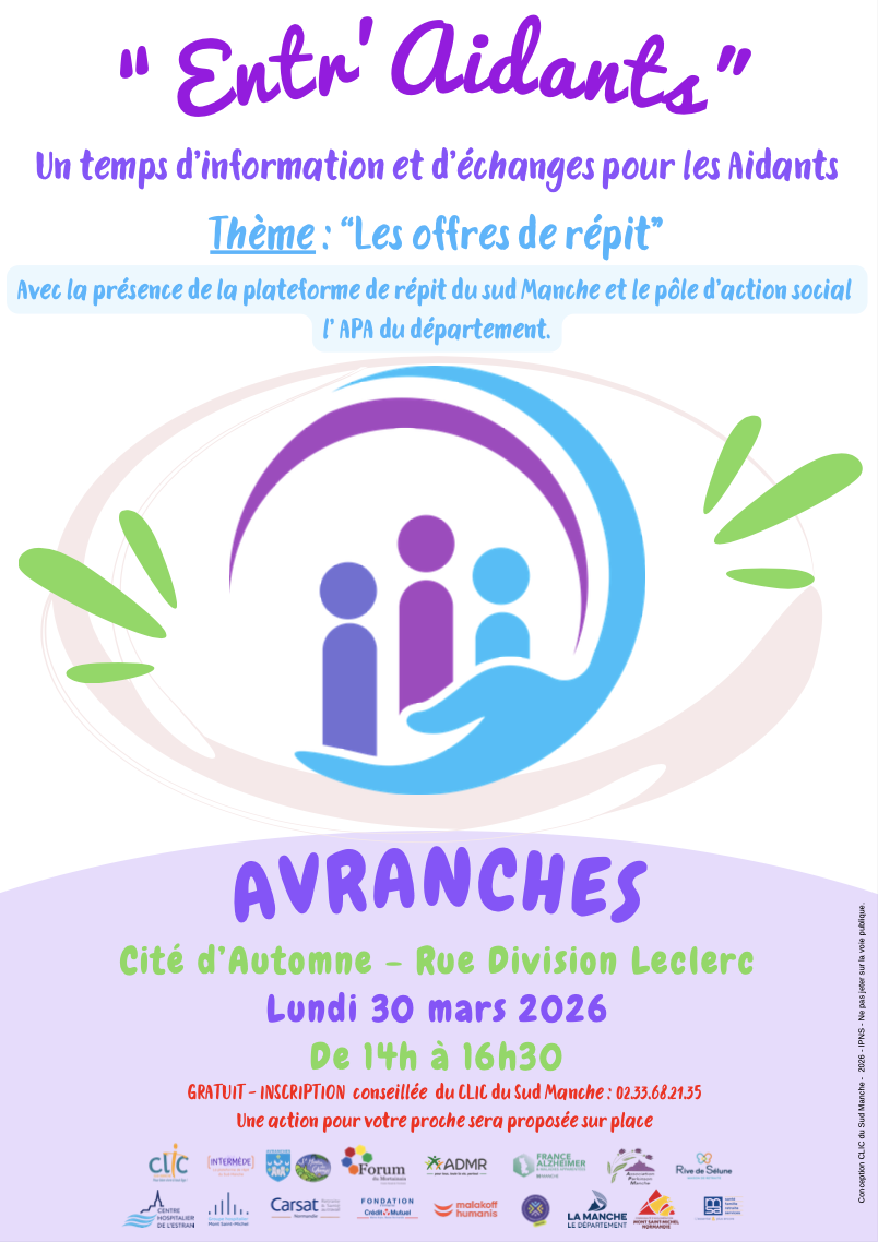 Le Clic du Sud-Manche, en partenariat avec de nombreux partenaires, organise des temps d’information et d’échanges destiné aux aidants.