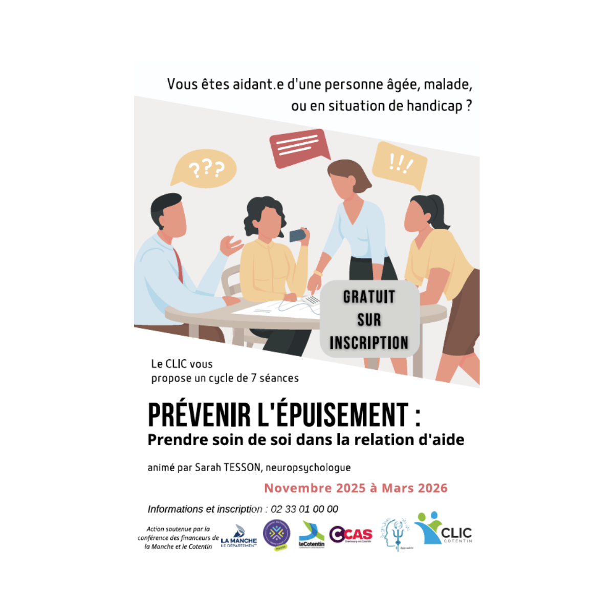 Pour plus de renseignements ou pour s’inscrire, contacter le CLIC du Cotentin au : 02.33.01.00.00