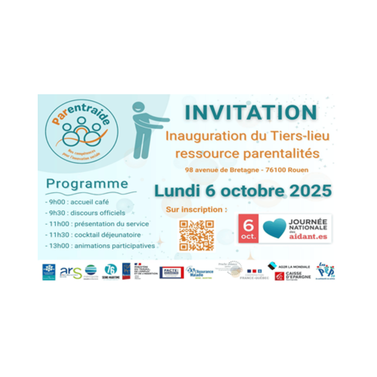 Lundi 6 octobre 2025, le Tiers-lieu ressource parentalités sera inauguré au 98 avenue de Bretagne, 76100 Rouen.