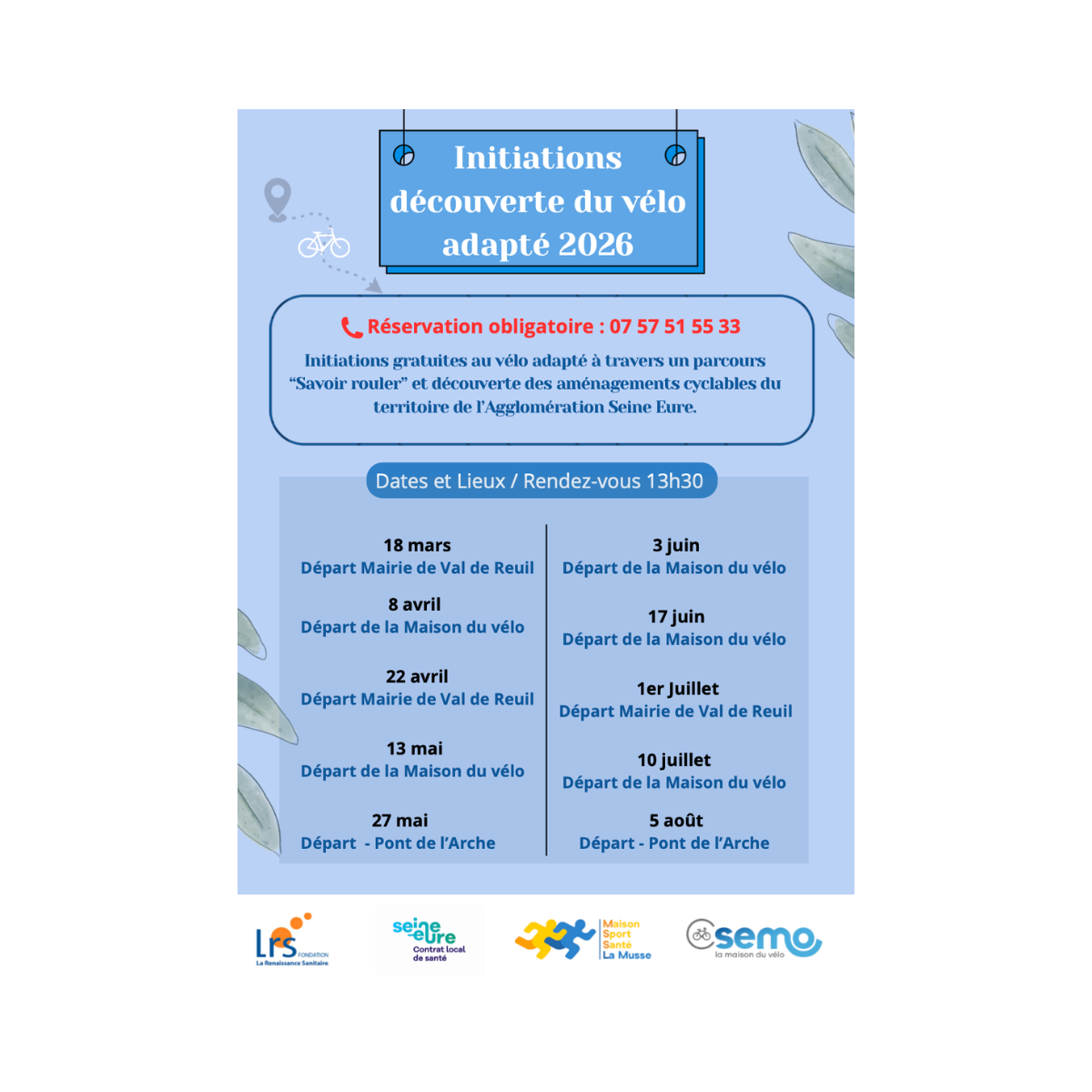 Dans le cadre de la promotion des mobilités douces, la Maison Sport Santé La Musse, en partenariat avec l’Agglomération Seine-Eure et la Maison du Vélo de Louviers, organise des séances d’initiation à la pratique du vélo sur le territoire.
