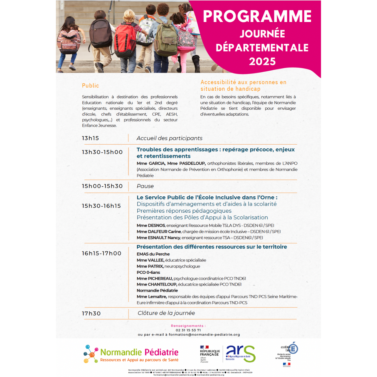 Dans le cadre de ses missions de prévention, d’information et de formation, Normandie Pédiatrie, avec le soutien de l’ARS Normandie et de la Direction des services départementaux de l’Éducation nationale de l’Orne, organise une journée départementale dédiée aux troubles du neurodéveloppement.