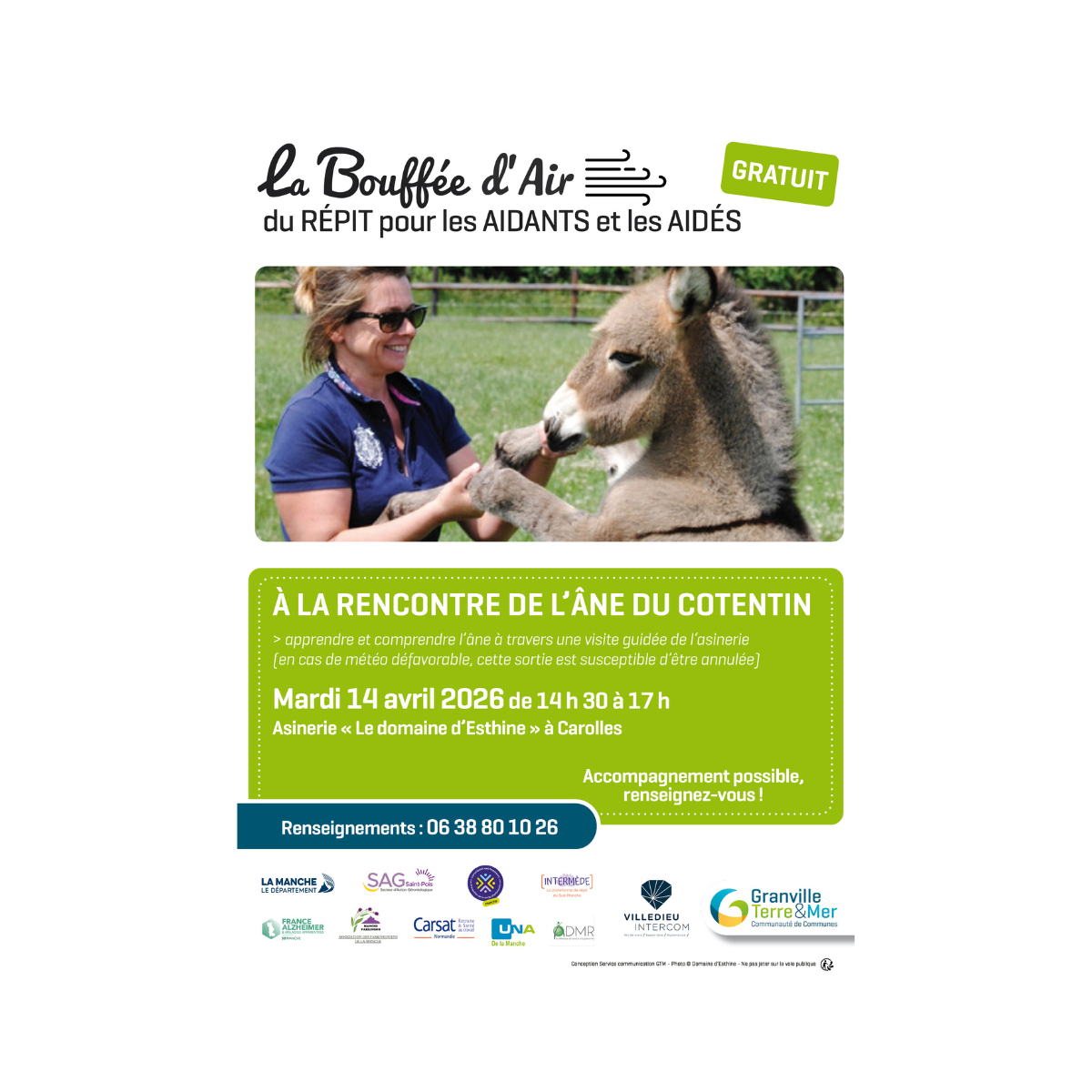 La rencontre se déroulera le mardi 14 avril de 14h30 à 17h au Domaine d’Esthine, à Carolles (50). Les participants pourront prendre part à des activités proposées pour les aidants et les aidés, ainsi qu’à une visite guidée du domaine animée par la propriétaire du site.