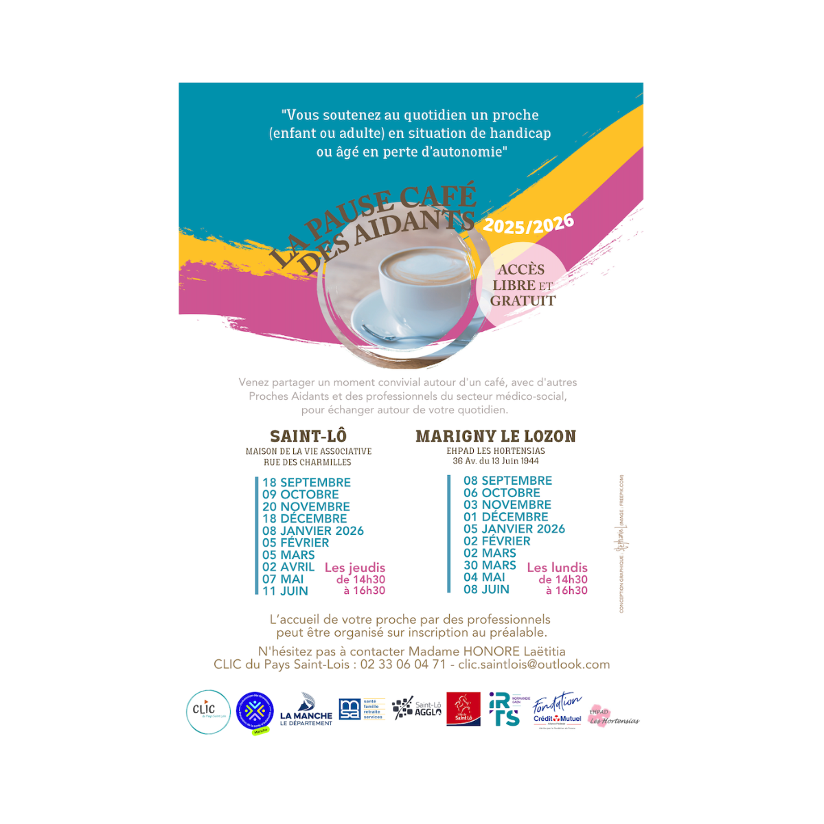 Jeudis de 14h30 à 16h30 : 08 janvier 2026, 05 février, 05 mars, 02 avril, 07 mai, 11 juin 2026. - Marigny-le-Lozon – EHPAD Les Hortensias