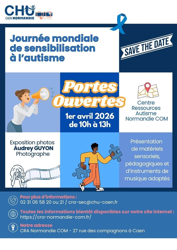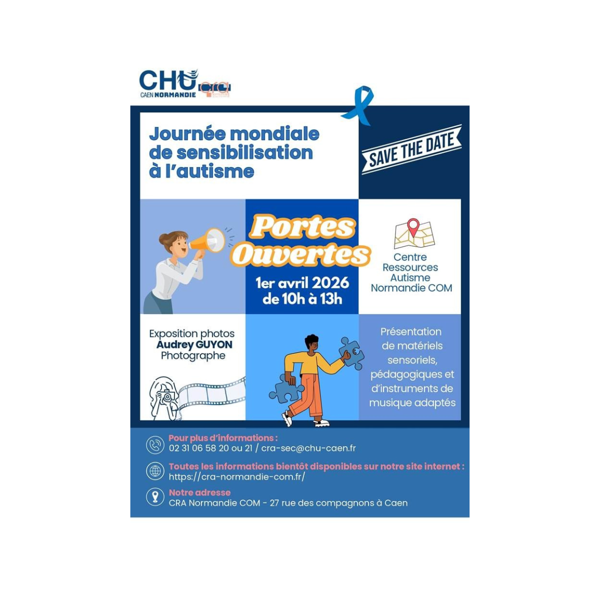 Le Centre Ressources Autisme Normandie Calvados Orne Manche (CRA Normandie COM) du CHU Caen Normandie organise une matinée portes ouvertes le mercredi 1er avril 2026, de 10h à 13h, au CRA Normandie COM, à Caen.
