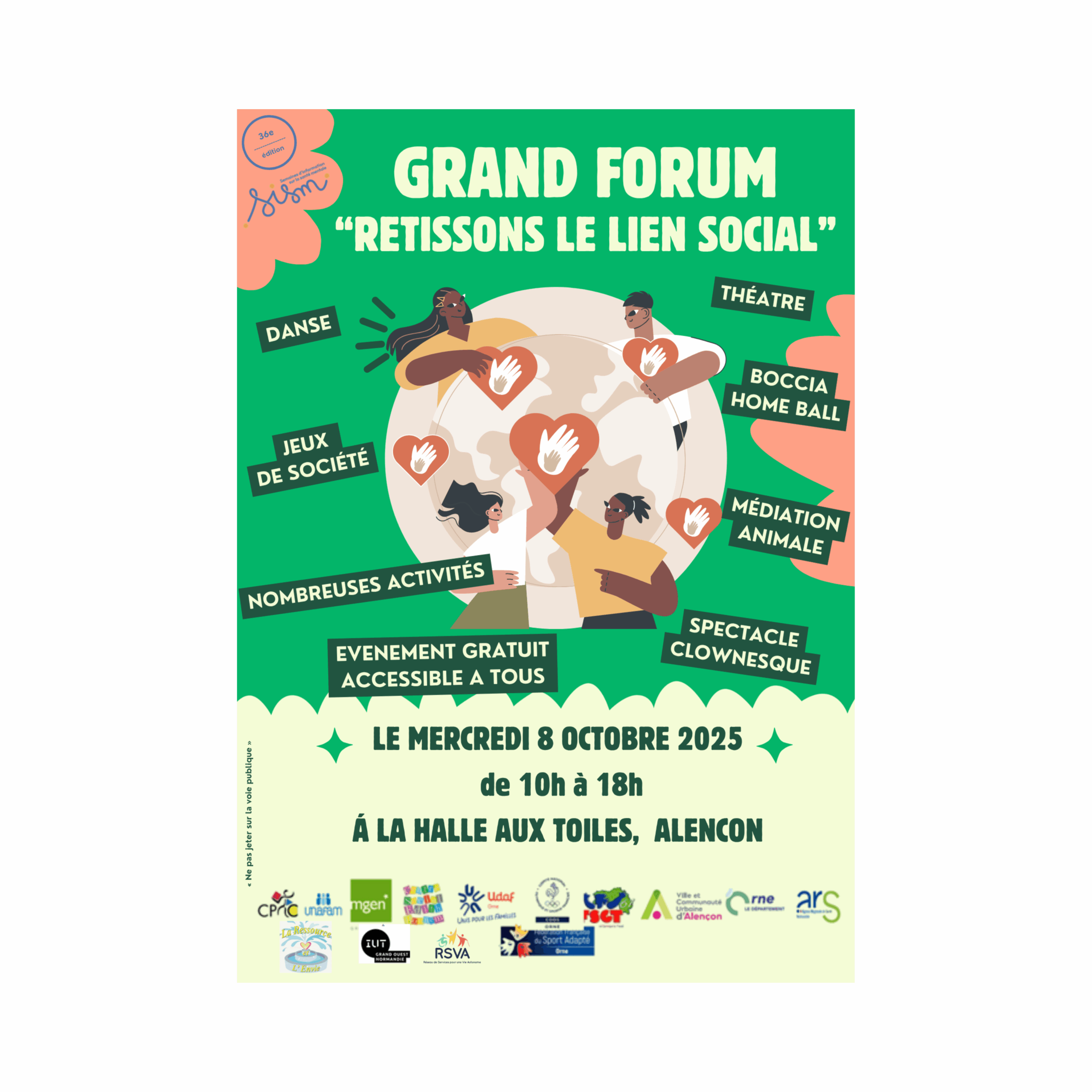 À l’occasion de la 36e édition des Semaines d’Information sur la Santé Mentale (SISM), les acteurs de l’Orne organisent un grand forum sur le thème « Pour notre santé mentale, réparons le lien social ». Rendez-vous le mercredi 8 octobre 2025 de 10h à 18h à la Halle aux Toiles pour une journée gratuite et ouverte à tous, dédiée à la découverte d’initiatives locales qui favorisent le lien social.