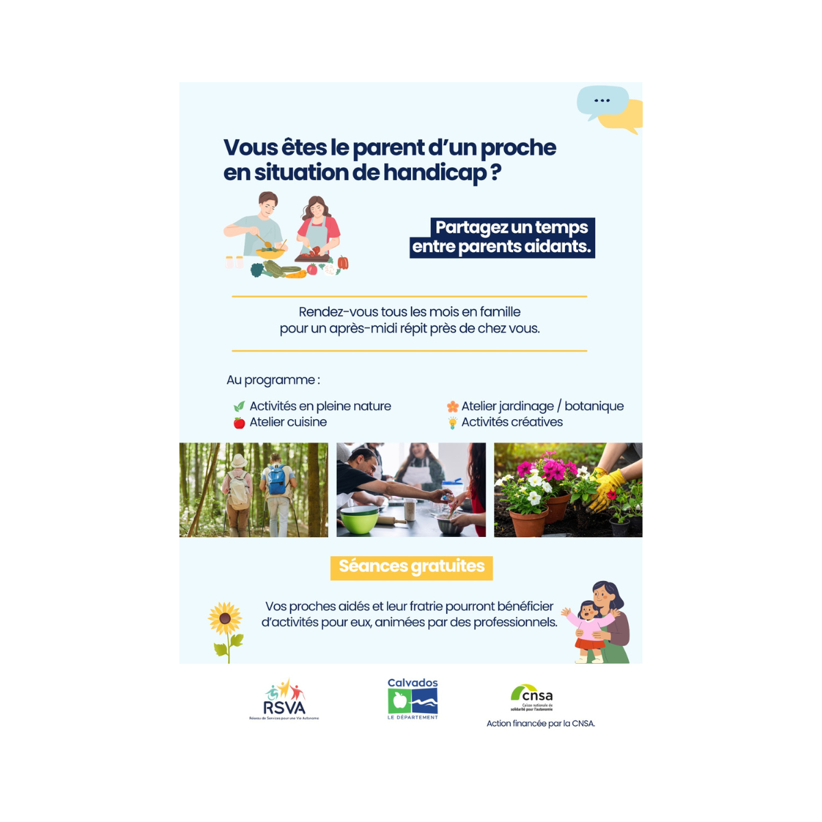 Dans le cadre de la réponse de la plateforme de répit "Parenthèse" à l’Appel à Manifestation d’Intérêt du Département du Calvados, des après-midi répit sont organisés pour les aidants.
